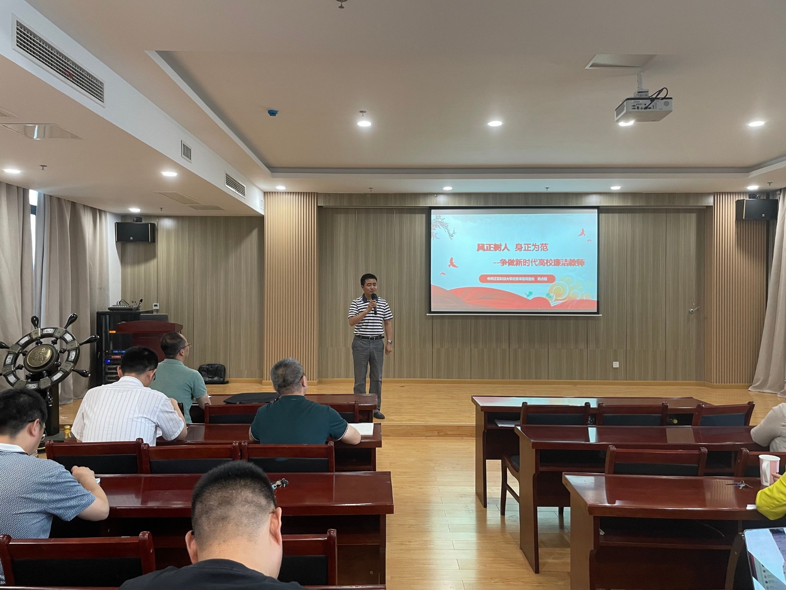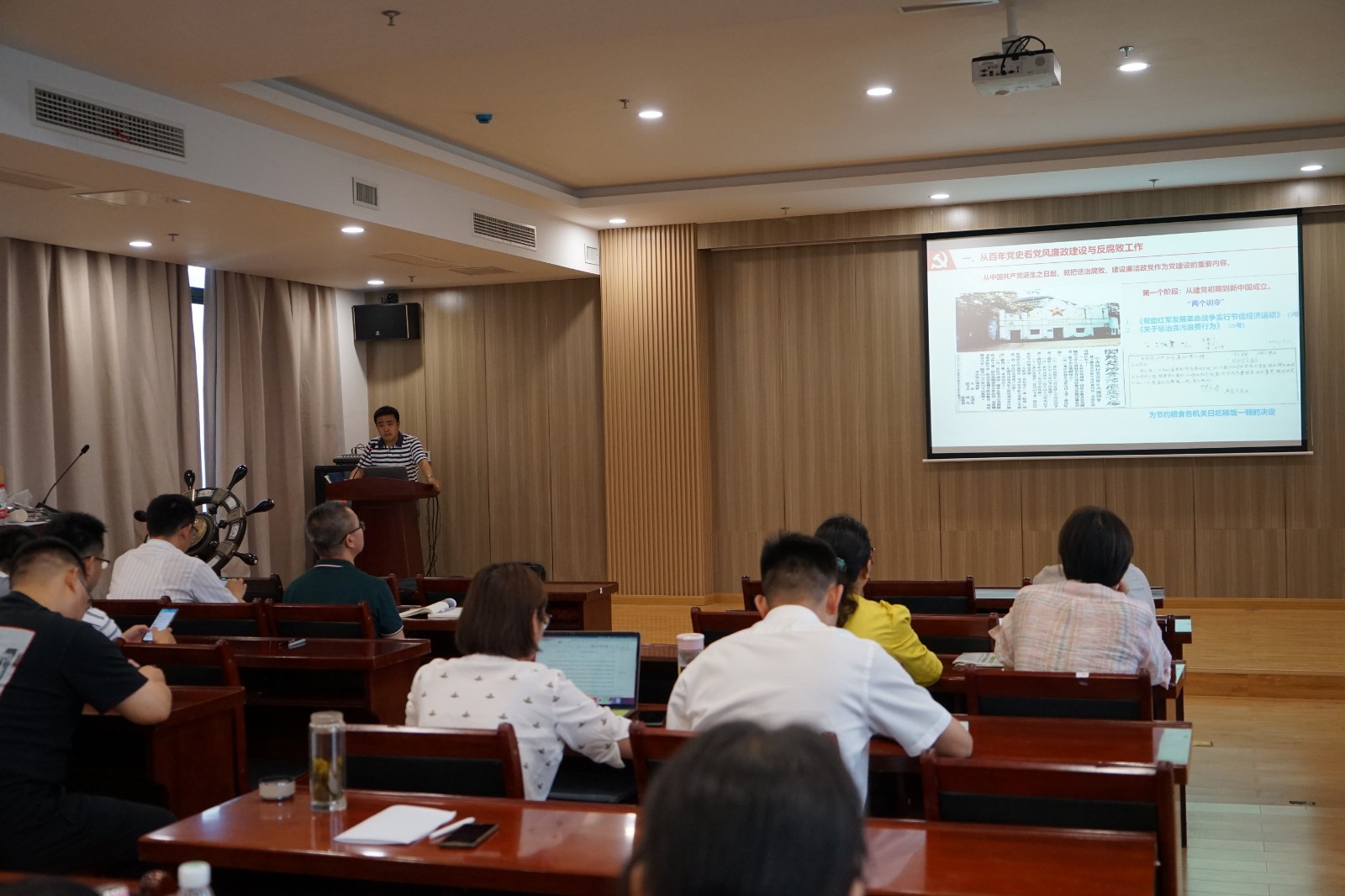 讲座分为“建党100周年—一脉相承全面从严治党”、“明晰形势—体制改革助力发展”、“身正为范—立心铸魂振兴伟业”三大主题,以党的历史为主线贯穿全篇,从党的五大选举产生出第一届中央监察委员会到当前反腐败斗争的复杂形势,最后联系到我们高校教师,号召大家要把党规党纪牢记心中,做新时代合格党员。主题鲜明、内容丰富,使参加活动的党员干部受益匪浅。