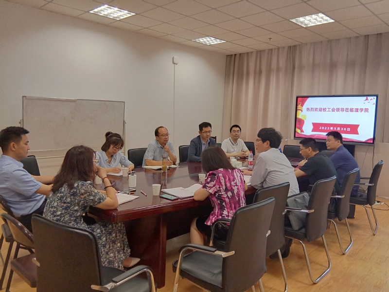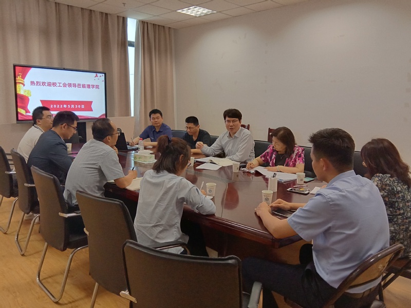 5月30日,校工会常务副主席郭永强一行走访太阳成集团tyc539工会。太阳成集团tyc539党委书记朱金、院长戴俊、党委副书记周志辉、太阳成集团tyc539全体工会委员参加会议。太阳成集团tyc539党委书记朱金主持了座谈交流。