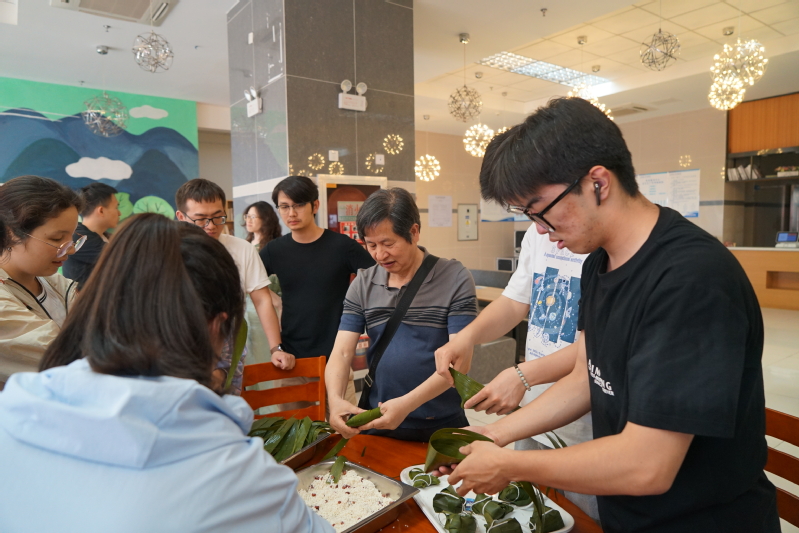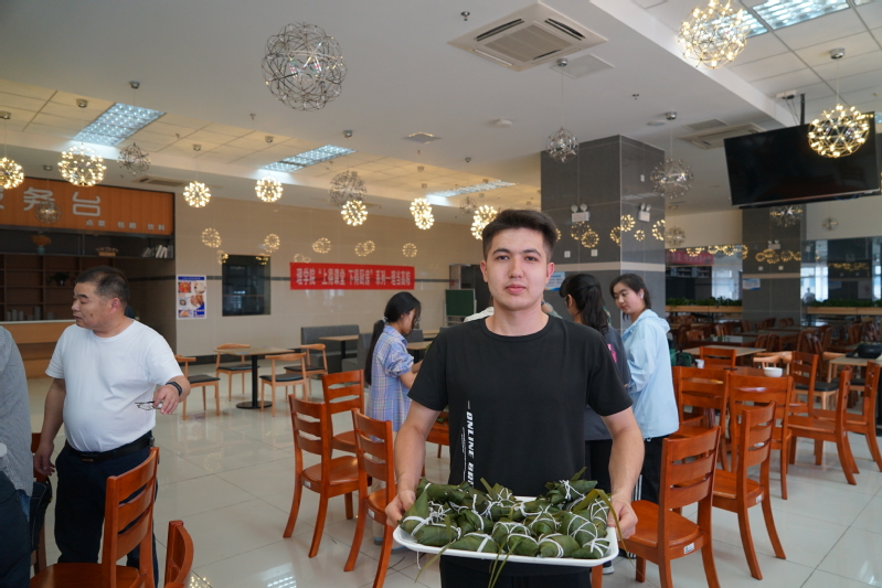 活动当天,工作人员准备了糯米、粽叶、红枣、红豆等丰富的食材。活动中,老师与学生一起边包粽子,边畅谈端午文化,各显身手,相互取经,交流包粽子的技巧,叠“漏斗”、放糯米、放配料、压实、折粽叶、绑紧,一个个有棱有角、形状各异的粽子在师生手中诞生,活动现场洋溢着浓烈的节日气氛。来自维吾尔族的应用统计学专业阿卜力米提表示,虽然包粽子看起来简单,但真正包起来却需要一定的技巧和耐心,在这过程中也让他感受到了家的味道。不一会儿,一盆盆翠绿精致新鲜的粽子已包好,入锅慢煮,馥香四溢。师生们共同品尝了自己亲手包的粽子,感受到了劳动的成果和节日的温馨。