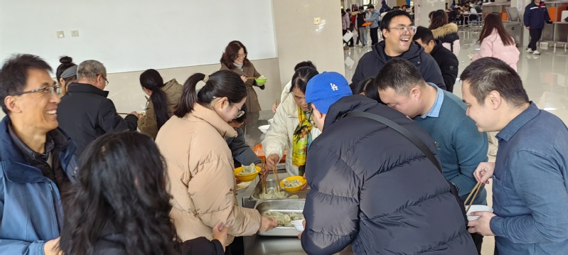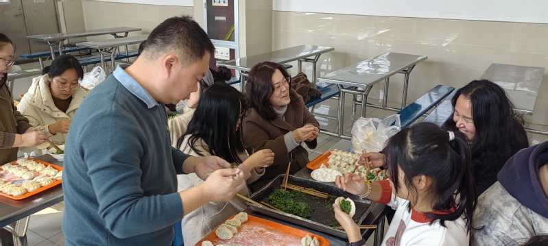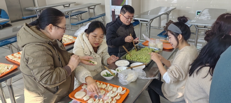 活动当天,工作人员准备了面擀皮、馅料、面粉等丰富的食材。活动中,大家齐聚一堂,各展所长,捏面皮、放馅料、对折、捏紧边缘、做出褶皱,一只只饱满圆润、形态各异的饺子在师生灵巧的手中诞生,现场气氛温馨而热烈。在包饺子的过程中,教师们不仅交流了厨艺心得,还分享了各自的教学经验和生活趣事,进一步加深了彼此之间的了解。随着一盘盘热气腾腾的饺子出锅,大家围坐在一起品尝着自己的劳动成果,脸上洋溢着幸福和满足的笑容,纷纷表示这样的活动不仅让大家体验到了传统民俗文化的魅力,还增强了彼此之间的交流和互动。