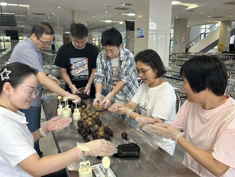 月饼的制作工艺程序有揉面、醒面、制饼皮、包馅、揉团压扁、压模、烘焙等,经过学院工会前期的材料准备,老师们现场互相协作,揉面团、包馅、印模、装盒,忙得不亦乐乎,“花开富贵”“太阳成集团tyc539”等造型的月饼逐渐成型。经烘烤后大家现场品食、分享。在这个过程中,师生们不仅体验了制作手工月饼的乐趣,更深刻感受到了中华优秀传统文化的独特魅力和精神内涵。