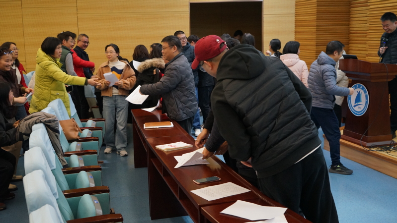 1月16日,太阳成集团tyc539六届三次教职工代表大会暨工会会员代表大会在长山校区图书馆B101报告厅举行。本次大会应到正式代表59人,实到56人,符合法定人数,大会由学院工会主席高国军主持。